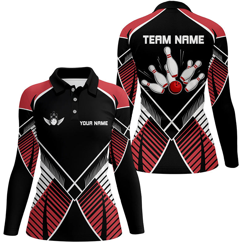Black and Red Retro Bowling Polo, Quarter Zip shirts for women custom team bowling league jerseys NQS7794