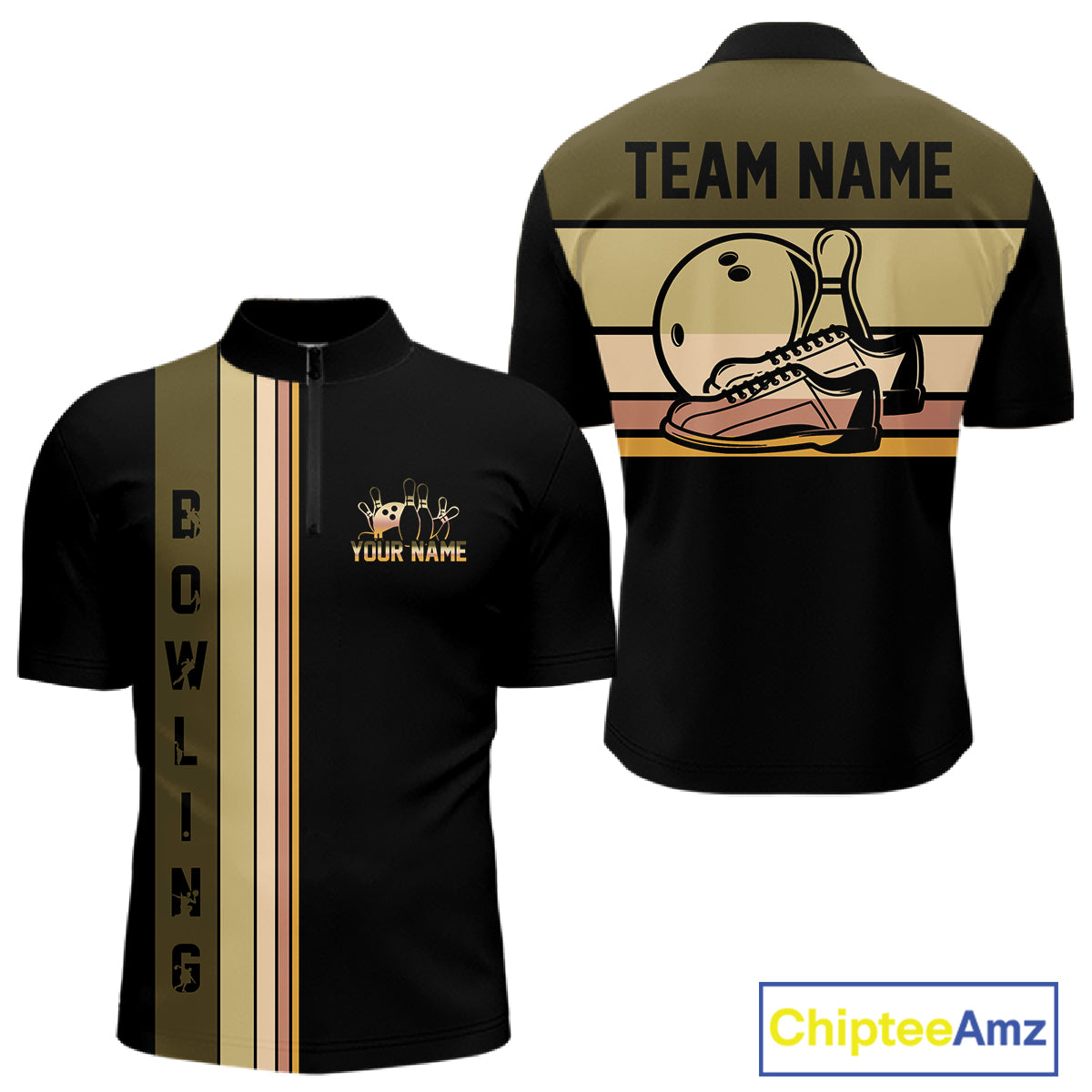 Black and Retro Bowling Polo, Quarter Zip Shirts for Men Custom Team Bowling League Jerseys NQS10745
