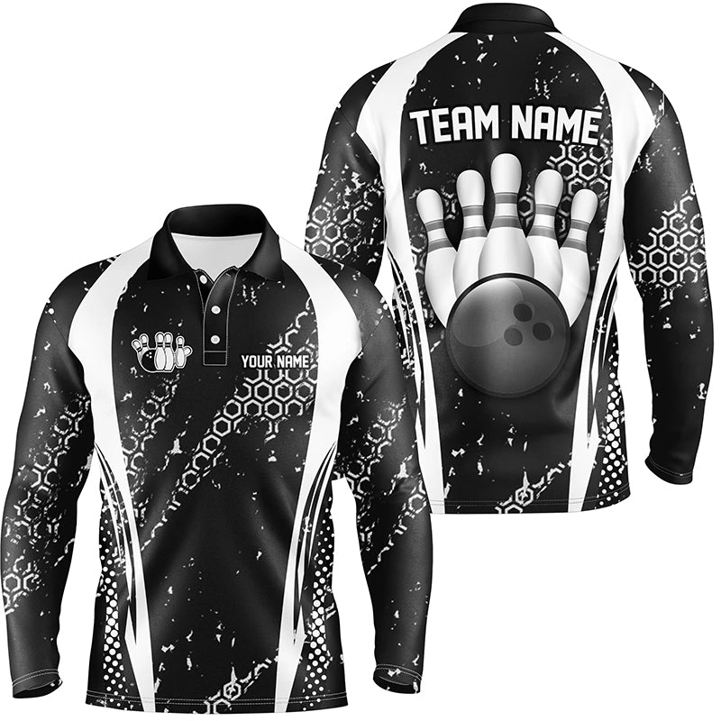 Black and White Grunge Retro Bowling Shirts For Men Custom Team Bowling League Jerseys NQS8371