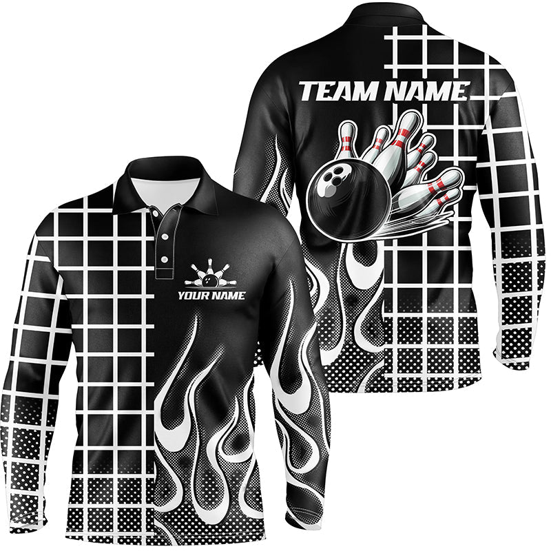 Black and white retro Bowling Polo, Quarter Zip Shirt for Men Custom Bowling Team League Jerseys NQS7588