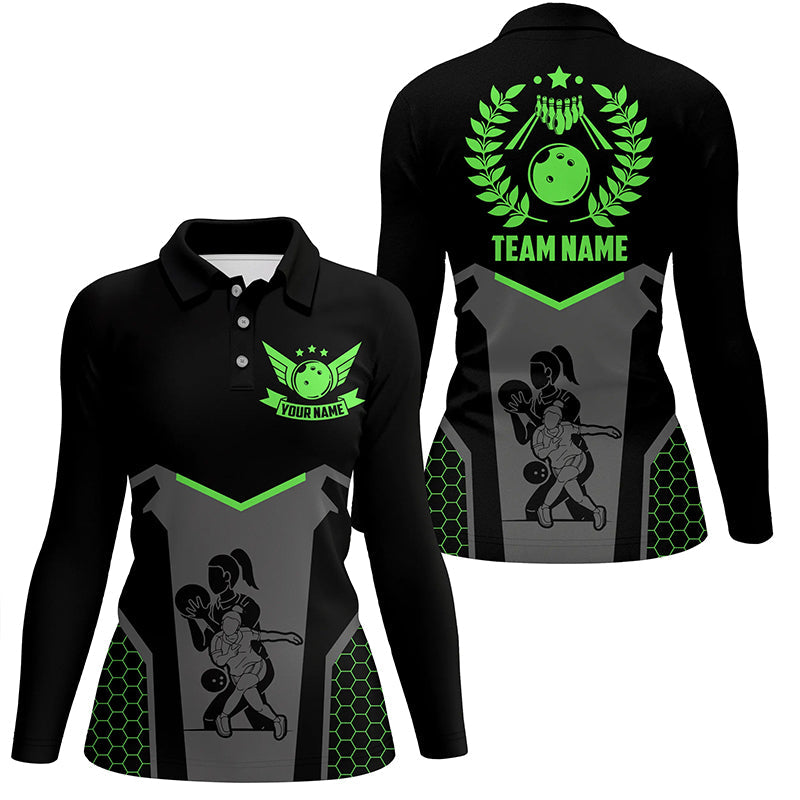 Black Bowling Jerseys For Women Custom Retro Bowling Shirts For Team Bowlers | Green NQS7550