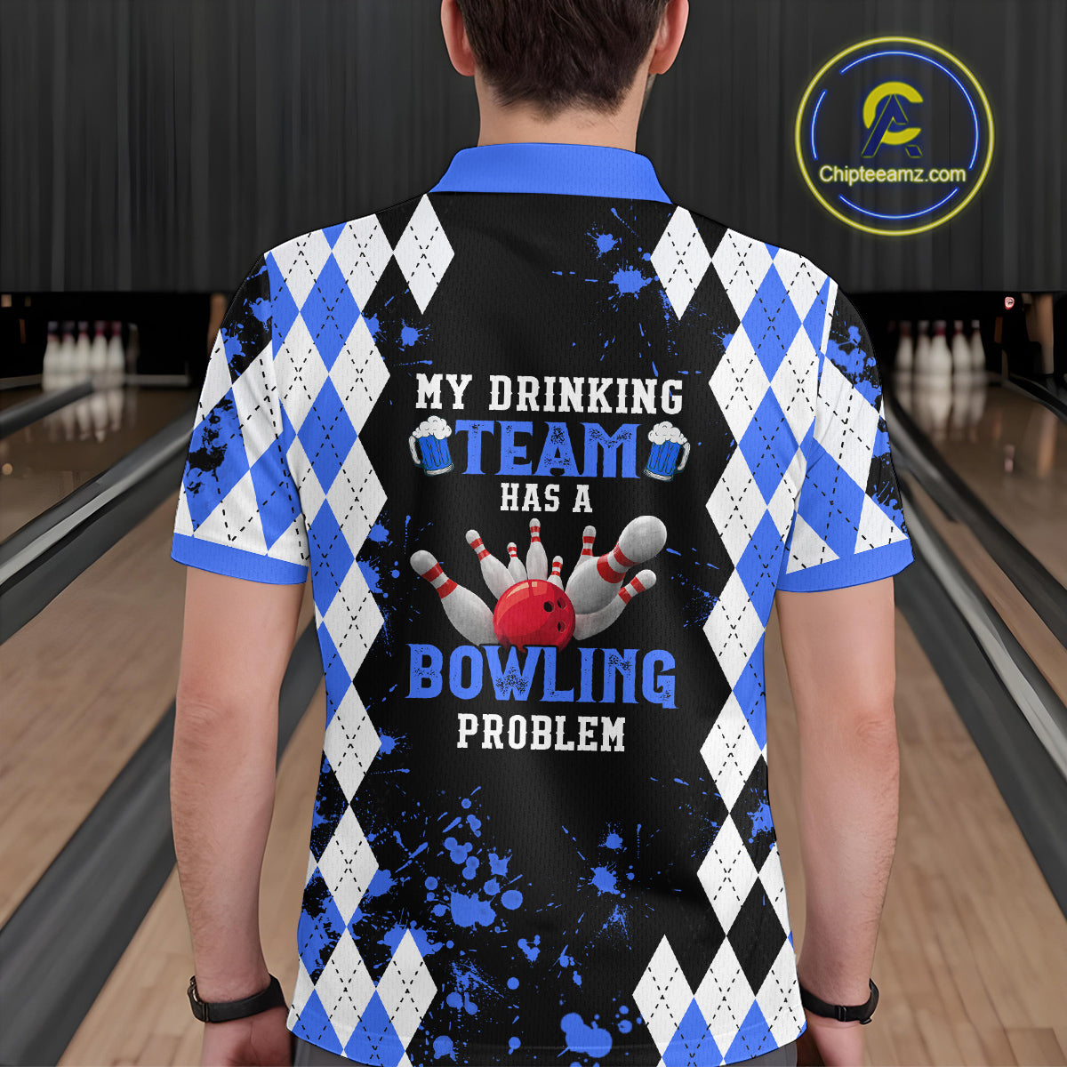 Blue argyle pattern Retro Bowling Shirts For Men Custom My drinking team has a bowling problem NQS9824