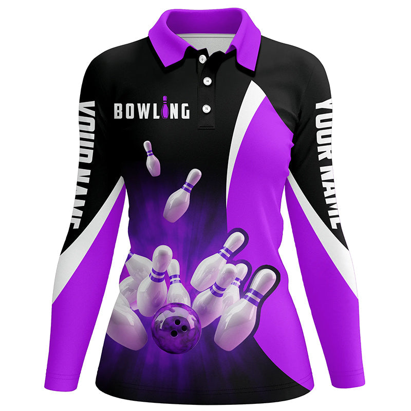 Custom bowling shirts retro black and purple Bowling polo shirts for women, Bowling team jerseys NQS6937