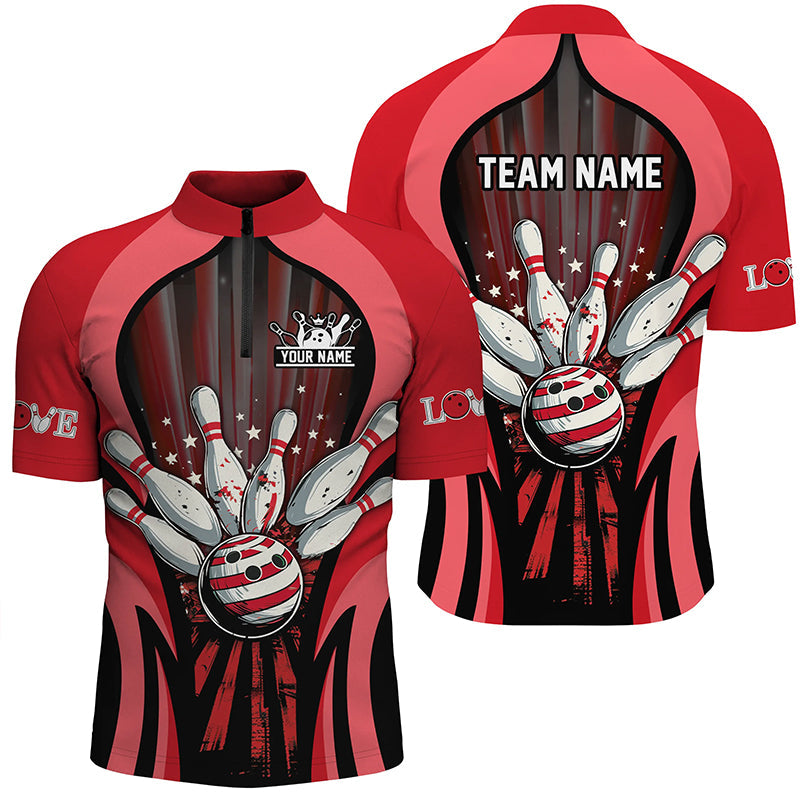 Mens Polo, Quarter Zip bowling shirts Custom Retro Bowling Team League Jersey, gift for bowler | Red NQS7747