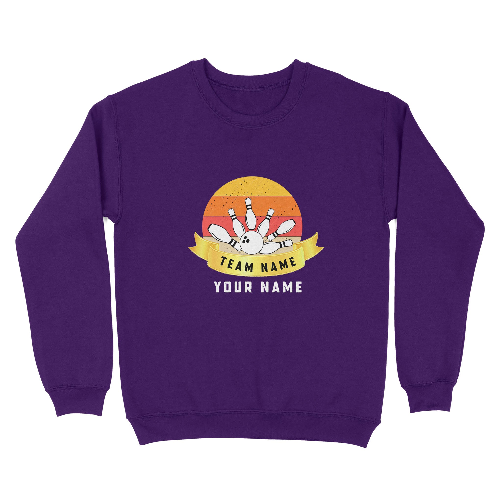 Custom Name and Team name Retro Bowling Ball Pins Unisex Standard Crew Neck Sweatshirt NQS8693