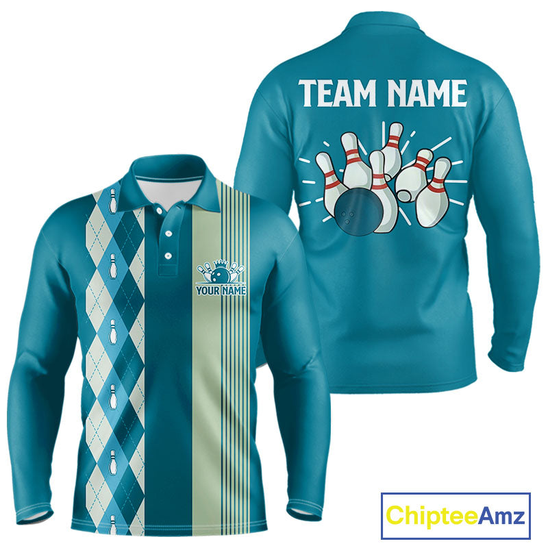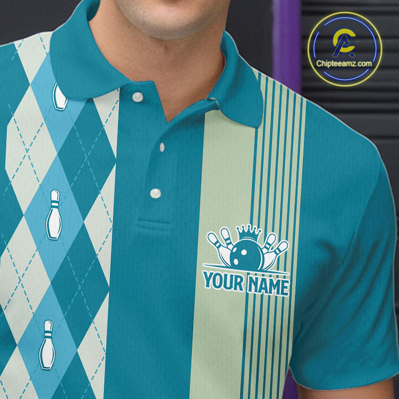 Retro Cyan Blue argyle pattern Bowling shirts For Men custom bowling team jerseys Bowler Outfits NQS10404