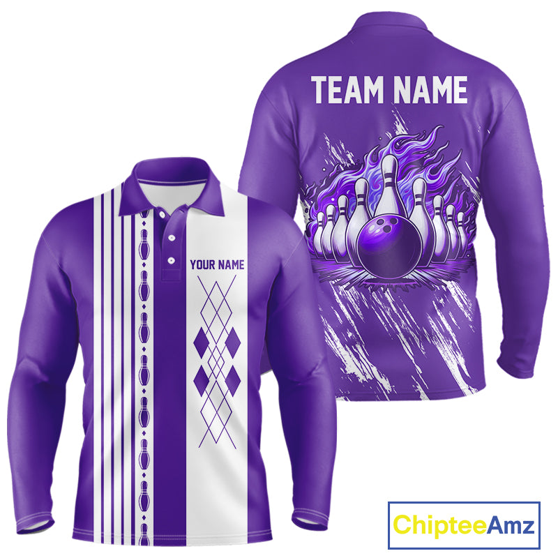 Retro Purple argyle Flame Bowling shirts For Men custom bowling team jerseys Mens Bowler Outfits NQS10326