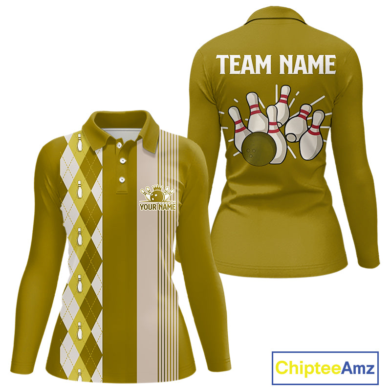 Retro Yellow argyle pattern Bowling shirts For Women custom bowling team jerseys Bowler Outfits NQS10277