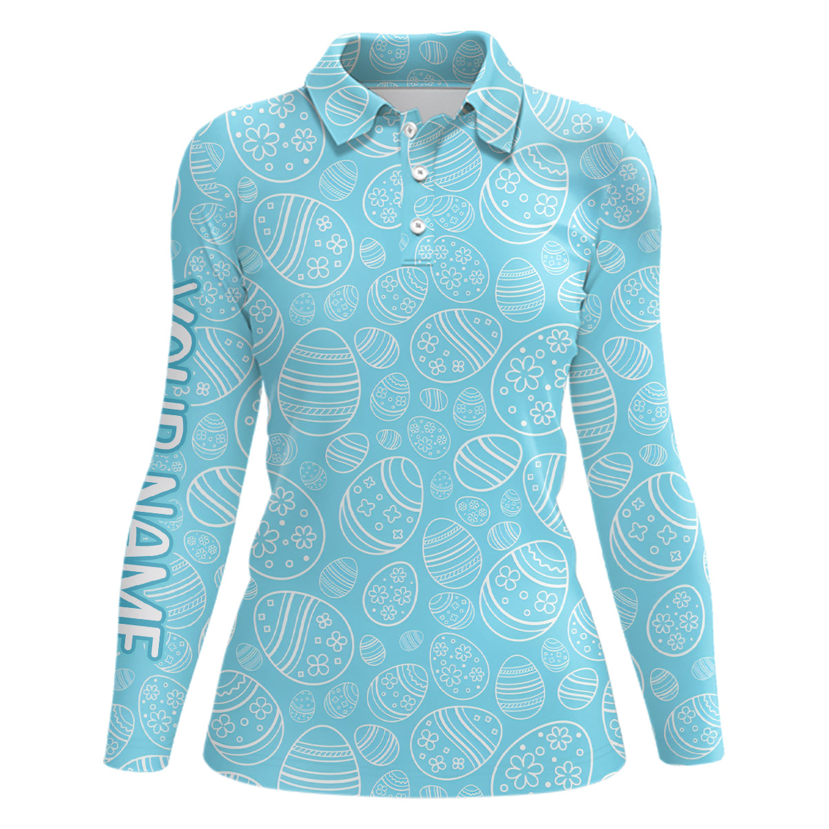 Blue Easter Eggs Womens Golf Polo Shirt Custom Easter Day Funny Golf Tops For Women Golf Gift LDT1337