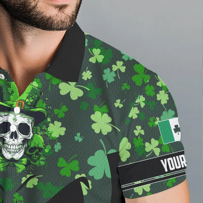 Personalized Green shamrock pattern Skull Men golf polo shirts Custom St Patrick day mens golf tops NQS9542