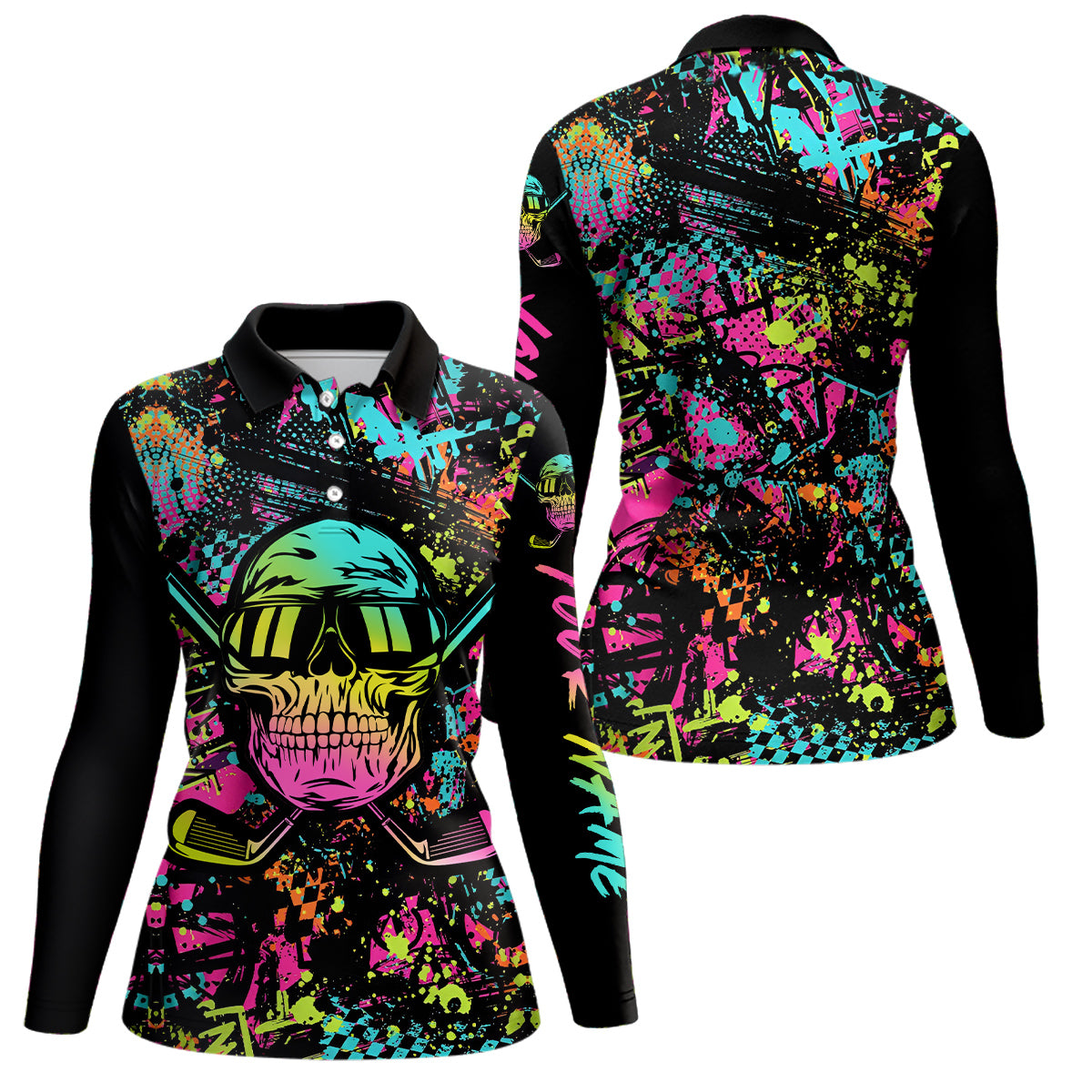 Skull Graffiti Womens Golf Polo Shirts, Custom Colorful Skull Golf Shirts For Women, Best Golf Gifts LDT0138