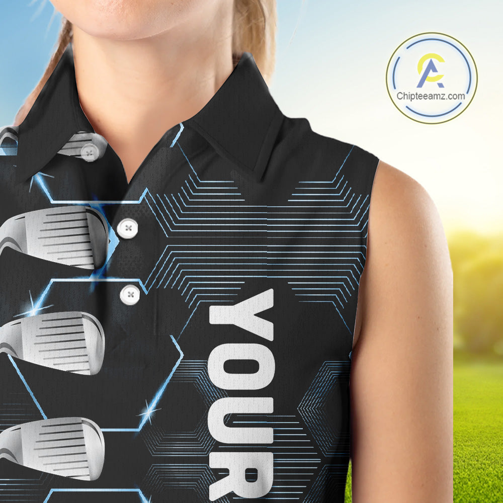 Blue and Black golf clubs Women sleeveless polos custom golf outfit ladies, personalized golf gifts NQS10212