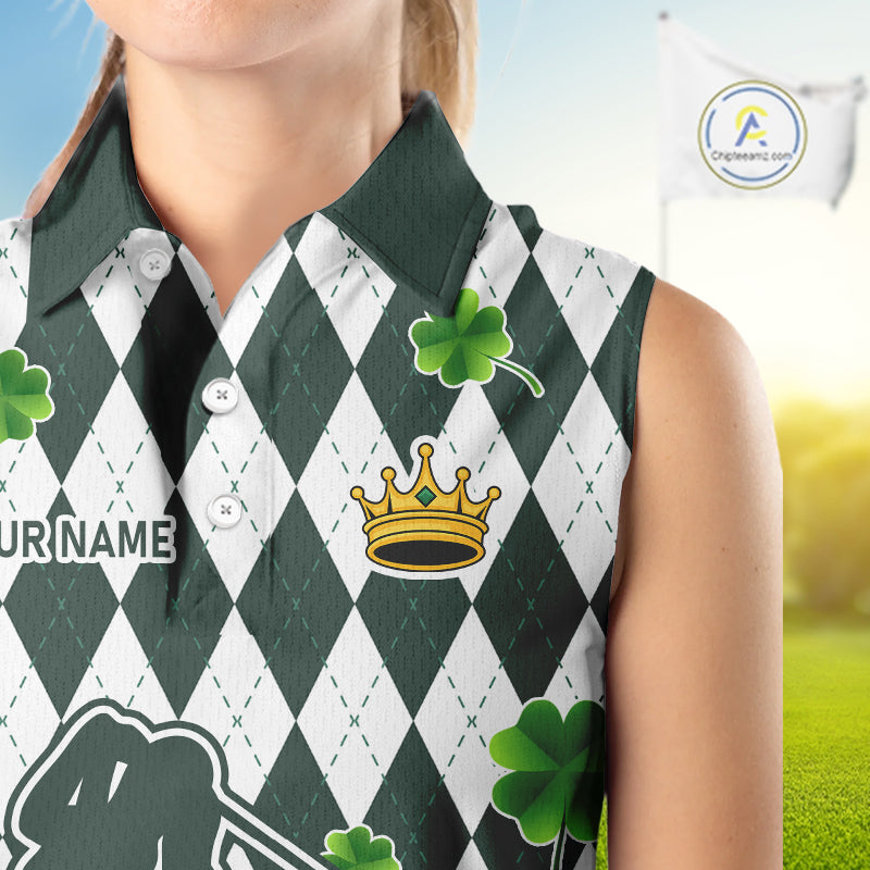 Green argyle pattern lucky shamrock Sleeveless Polo Shirt Custom St. Patrick's ladies golf outfit NQS10775