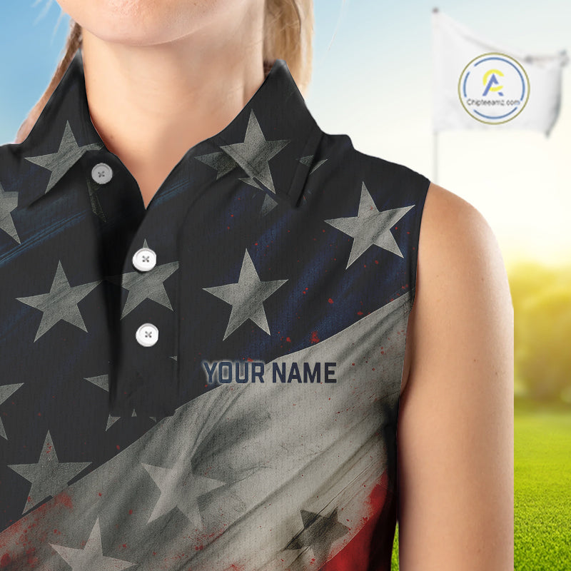 Personalized sleeveless golf polos shirts American flag 4th July custom patriotic ladies golf wears NQS9945