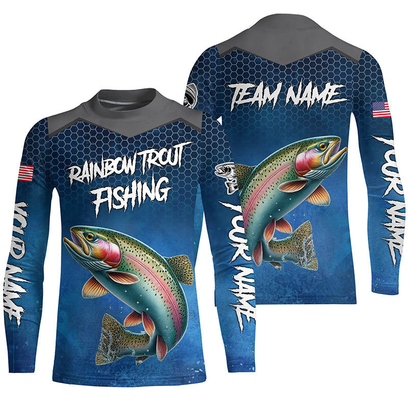 Blue camo Rainbow trout fishing Custom performance long sleeve team Trout fishing tournament shirts NQS8237