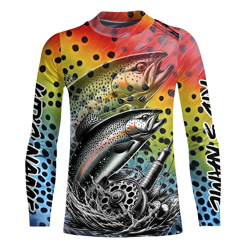 Rainbow Trout Fly Fishing Custom Long Sleeve Tournament Fishing Shirts, Trout Fishing Jerseys IPHW5592