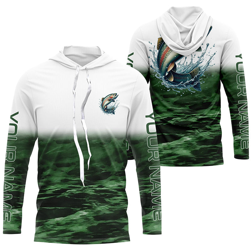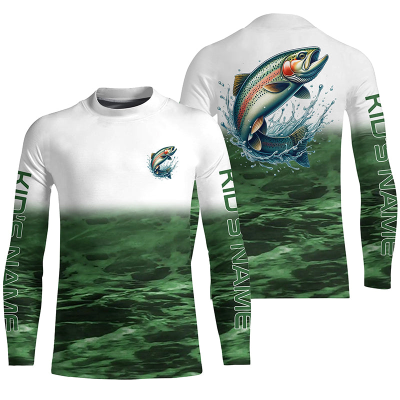 Rainbow Trout Fishing Custom Long Sleeve Tournament Fishing Shirts, Trout Fly Fishing Shirt | Blue IPHW6352
