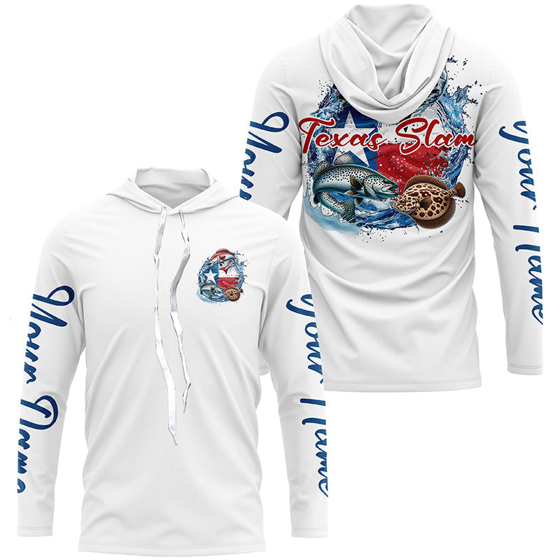 Custom Texas Slam Long Sleeve Fishing Shirts, Texas Trio Redfish, Trout, Flounder Fishing Shirts IPHW7055