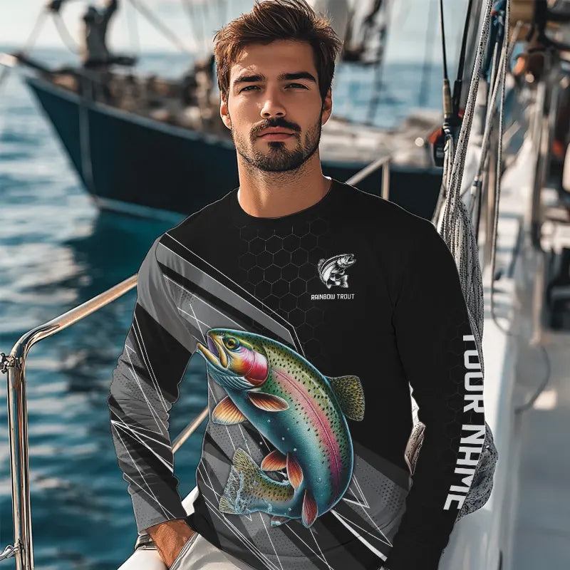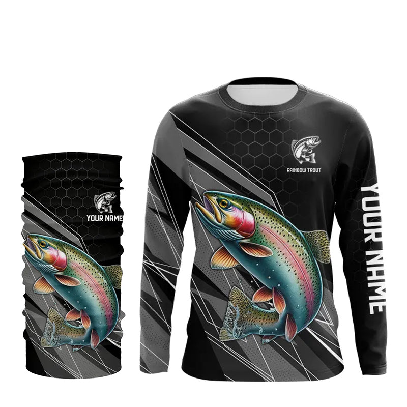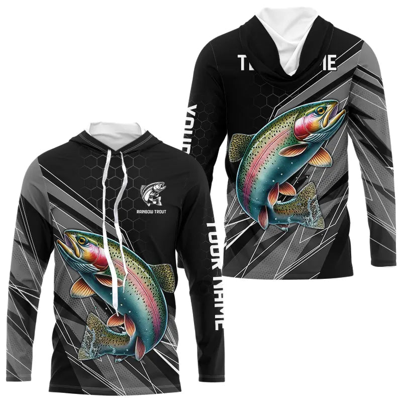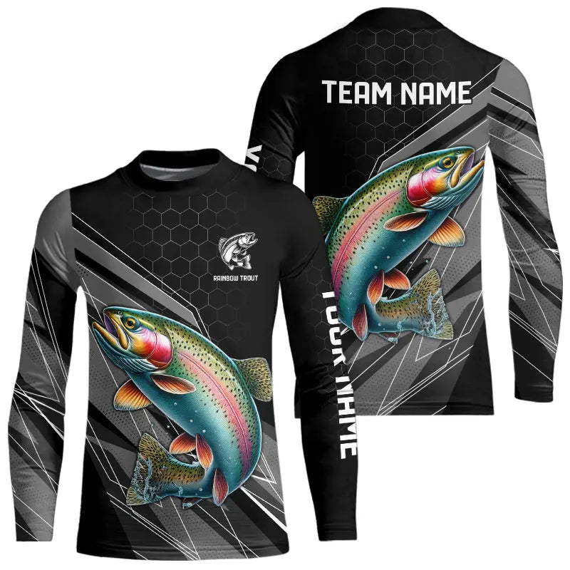 Personalized Black camo Rainbow Trout Fishing Jerseys, Trout Long Sleeve Fishing Tournament Shirts NQS9751