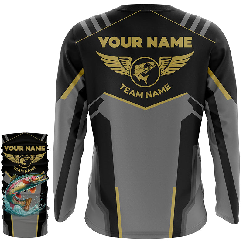 Personalized Black Rainbow trout Fishing jersey, Team trout Fishing Long Sleeve tournament shirts NQS6319