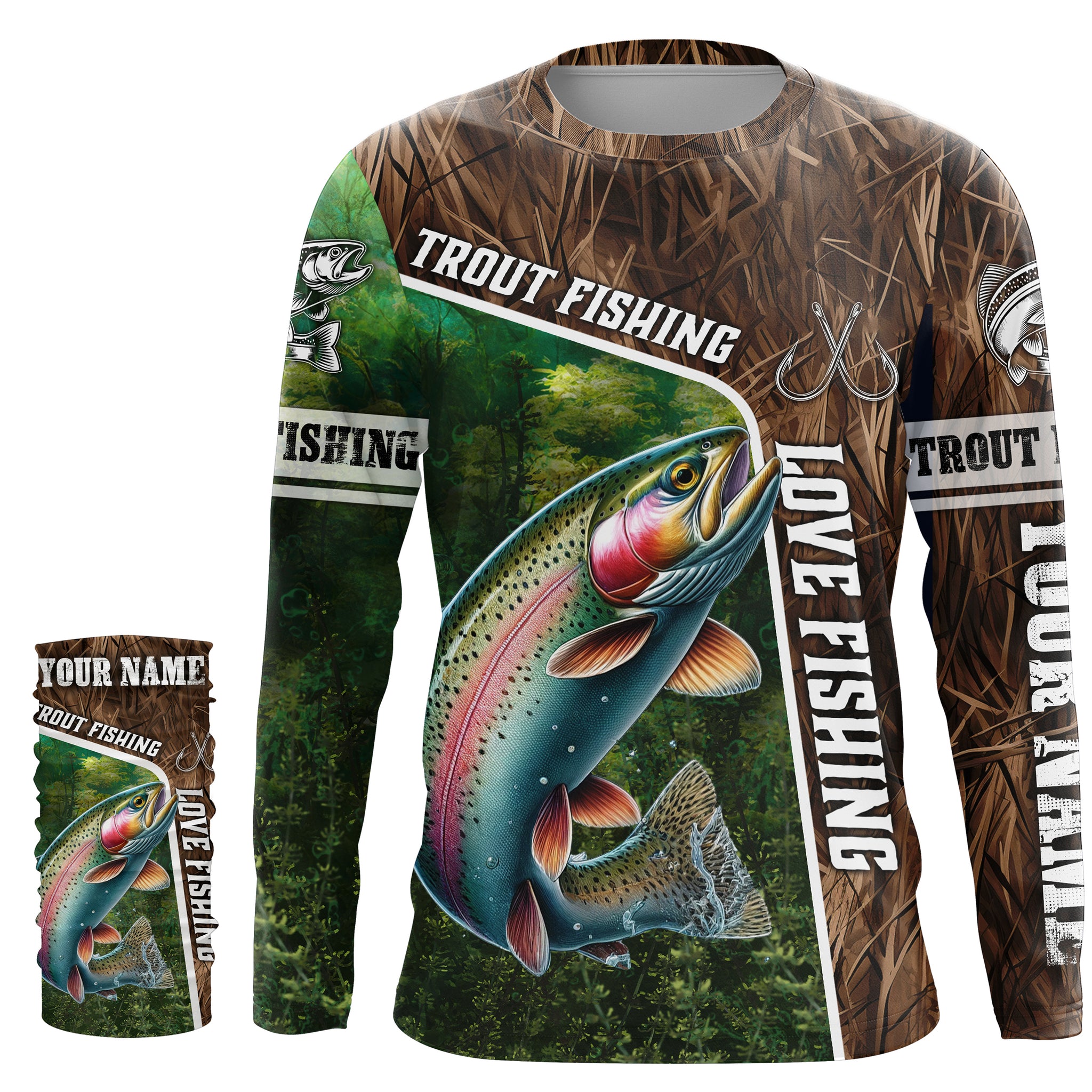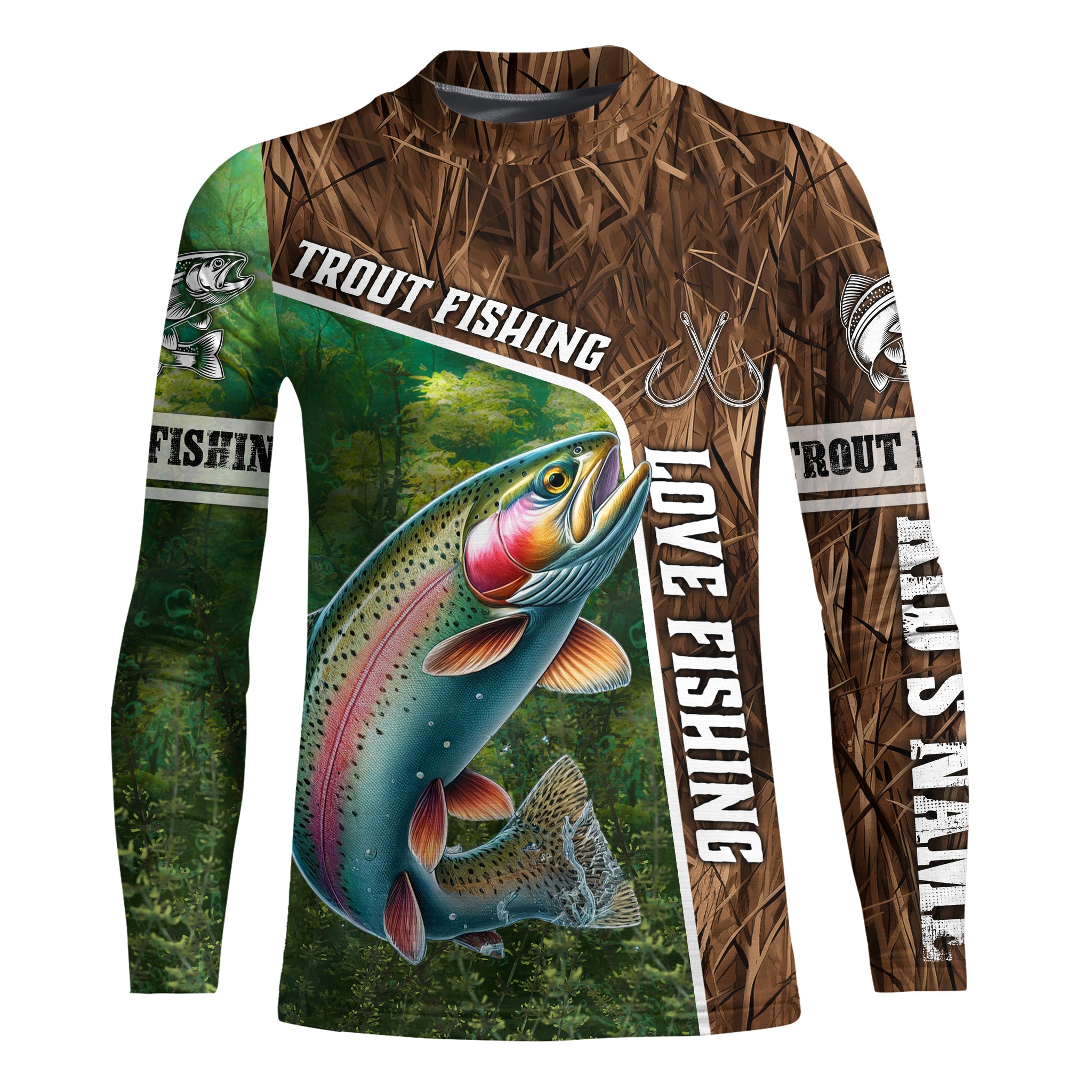 Personalized Rainbow trout Fishing Shirts, Love Fishing Camo fish on 3D All Over Printed Shirts NQS5902