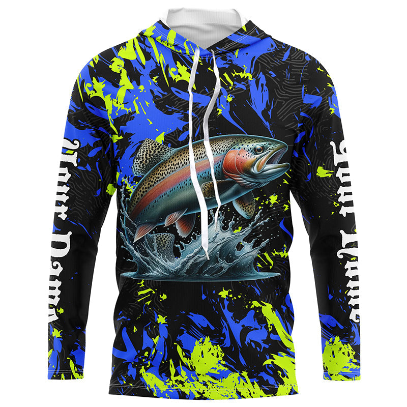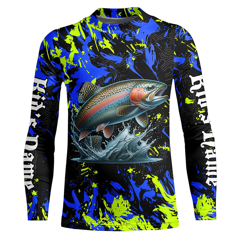 Rainbow trout fishing green blue camo Custom UV protection performance long sleeve fishing jerseys NQS7239