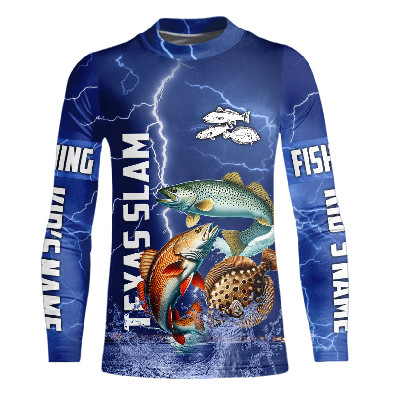 Texas Slam Fishing blue lightning jerseys custom performance Long Sleeve tournament fishing shirts NQS9236