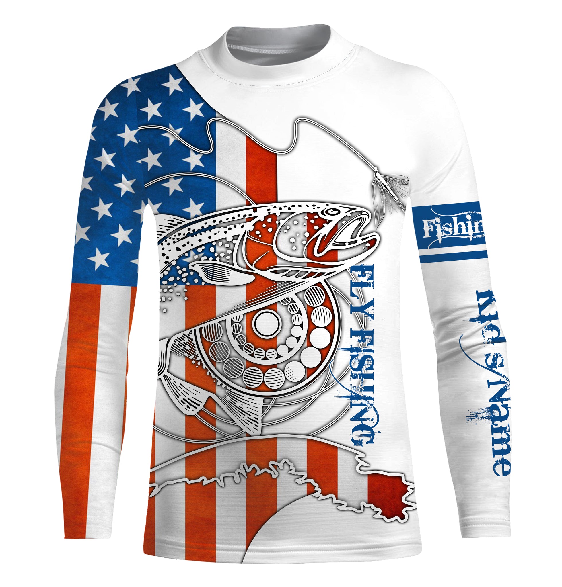 Trouts fly fishing American flag Custom Name UV sun protection UPF 30+ performance fly fishing shirts NQS3581
