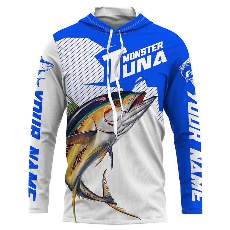 Monster Tuna Fishing jerseys, Yellowfin Tuna fish skull Custom Long sleeve Fishing Shirts | blue IPHW3532