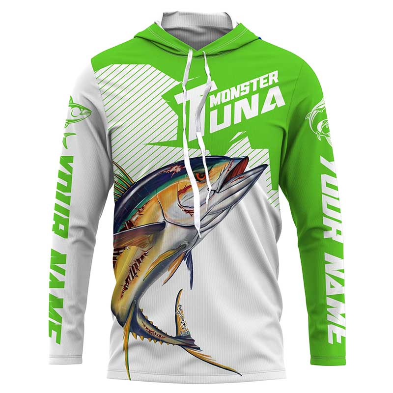 Monster Tuna Fishing jerseys, Yellowfin Tuna fish skull Custom Long sleeve Fishing Shirts | green IPHW3533