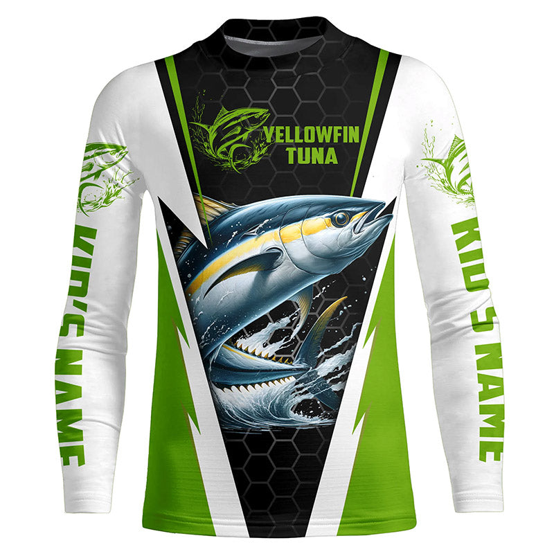 Custom Yellowfin Tuna Fishing Jerseys, Tuna Long Sleeve Performance Fishing League Shirts | Green IPHW6401