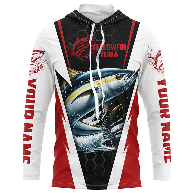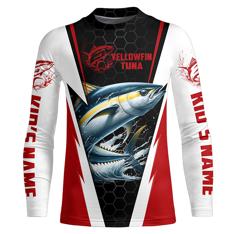 Custom Yellowfin Tuna Fishing Jerseys, Tuna Long Sleeve Performance Fishing League Shirts | Red IPHW6402