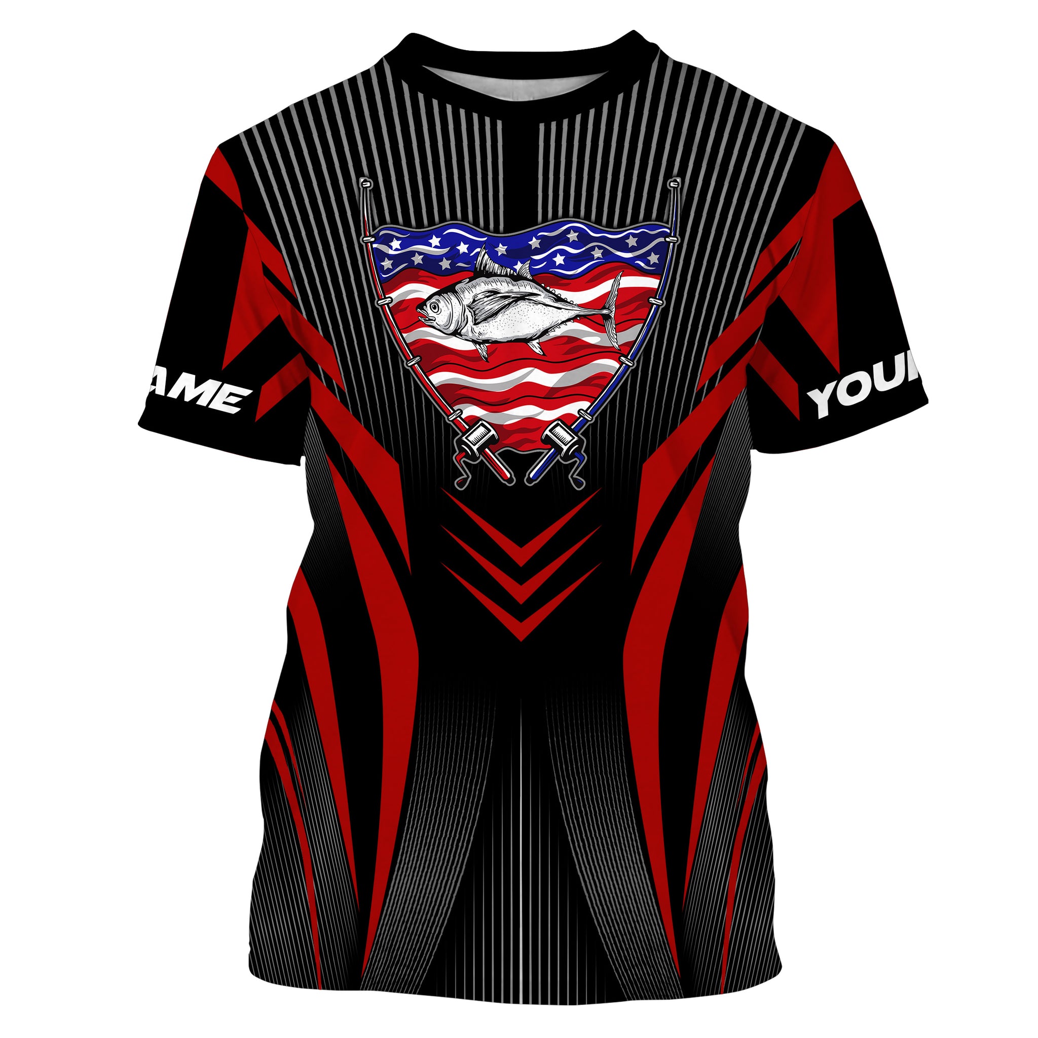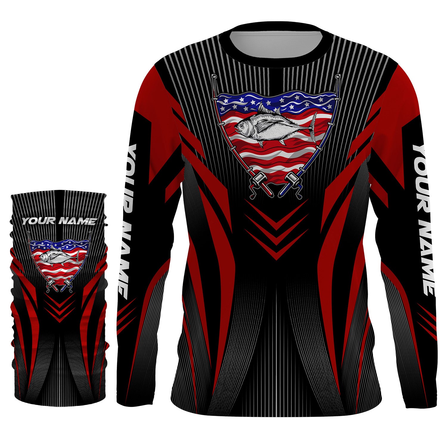 Tuna Fishing American Flag Custom performance Long Sleeve Shirt, Patriotic Fishing jerseys for fisherman TTN20