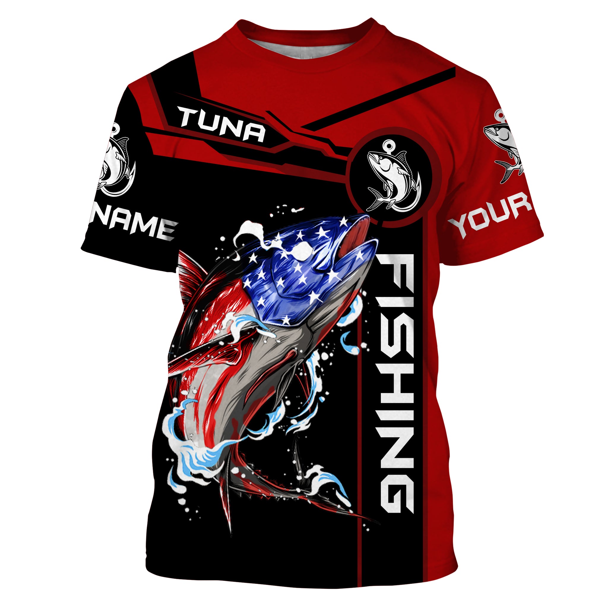 Tuna fishing American flag patriotic Custom Name men's performance Fishing Shirts, fishing apparel NQS3279