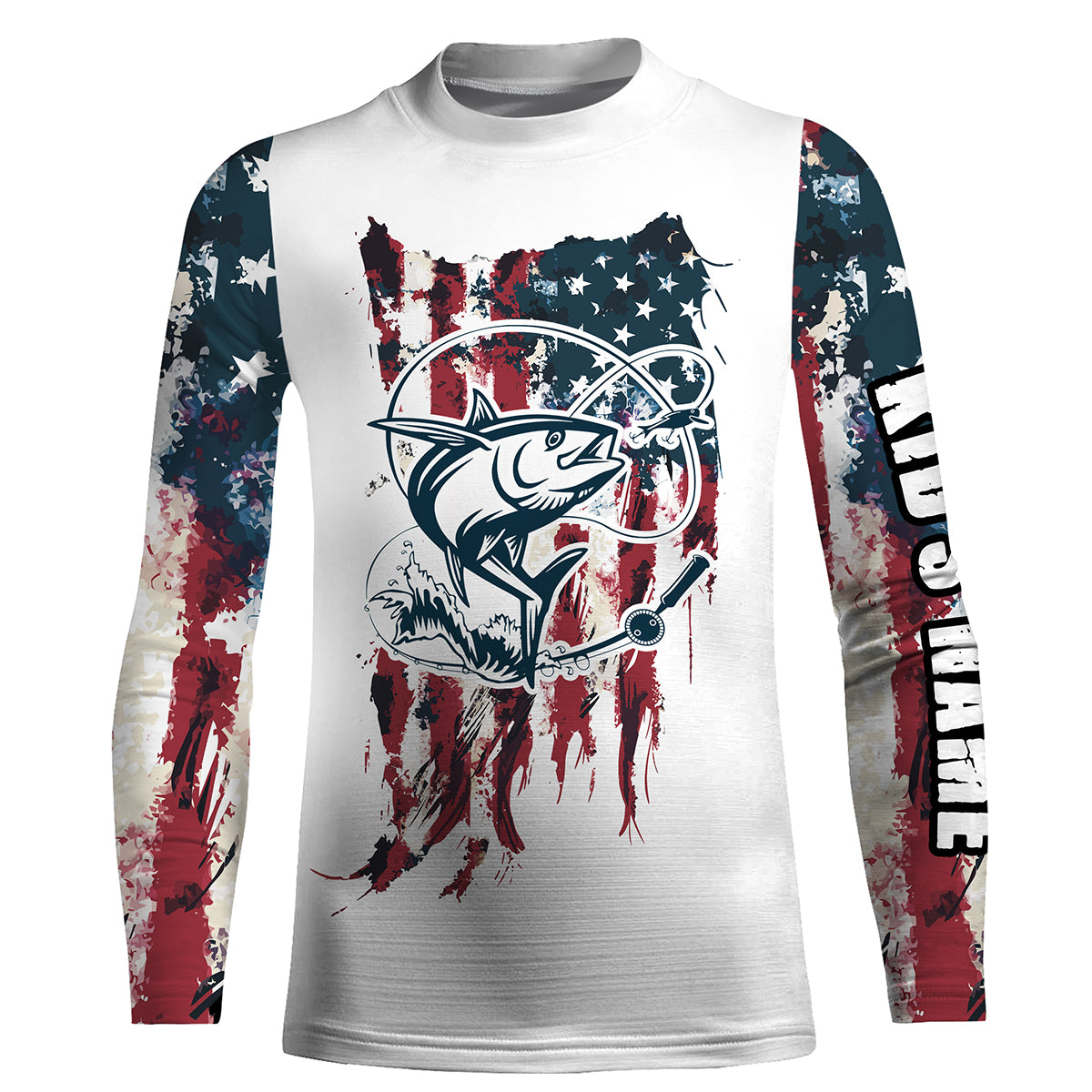 Tuna Fishing American Flag Patriotic Custom Name UV Protection Long Sleeve Shirt, Performance Shirt - FSD2469