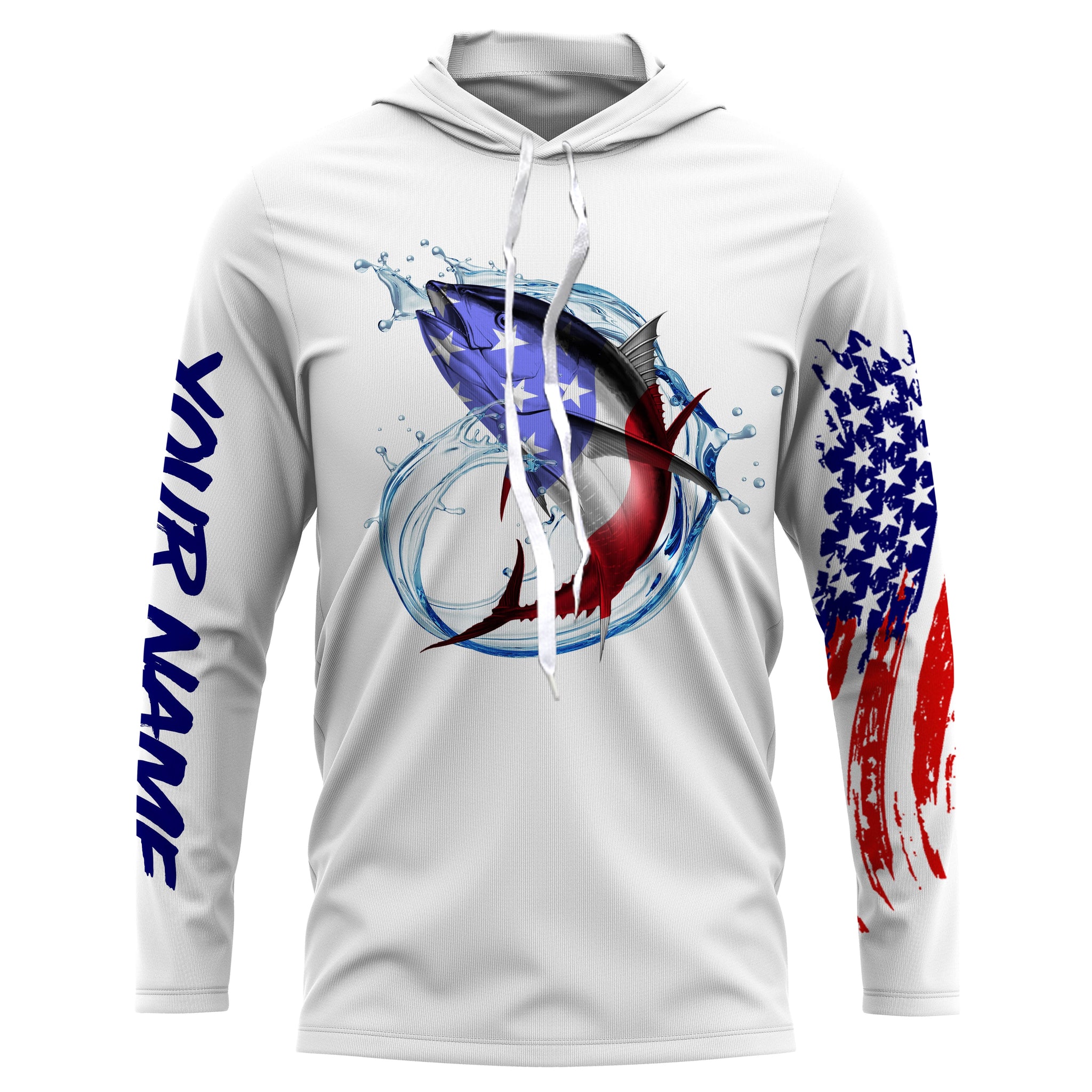 Tuna fishing American flag patriotic Custom Name UV protection UPF 30+ fishing jersey NQS2964