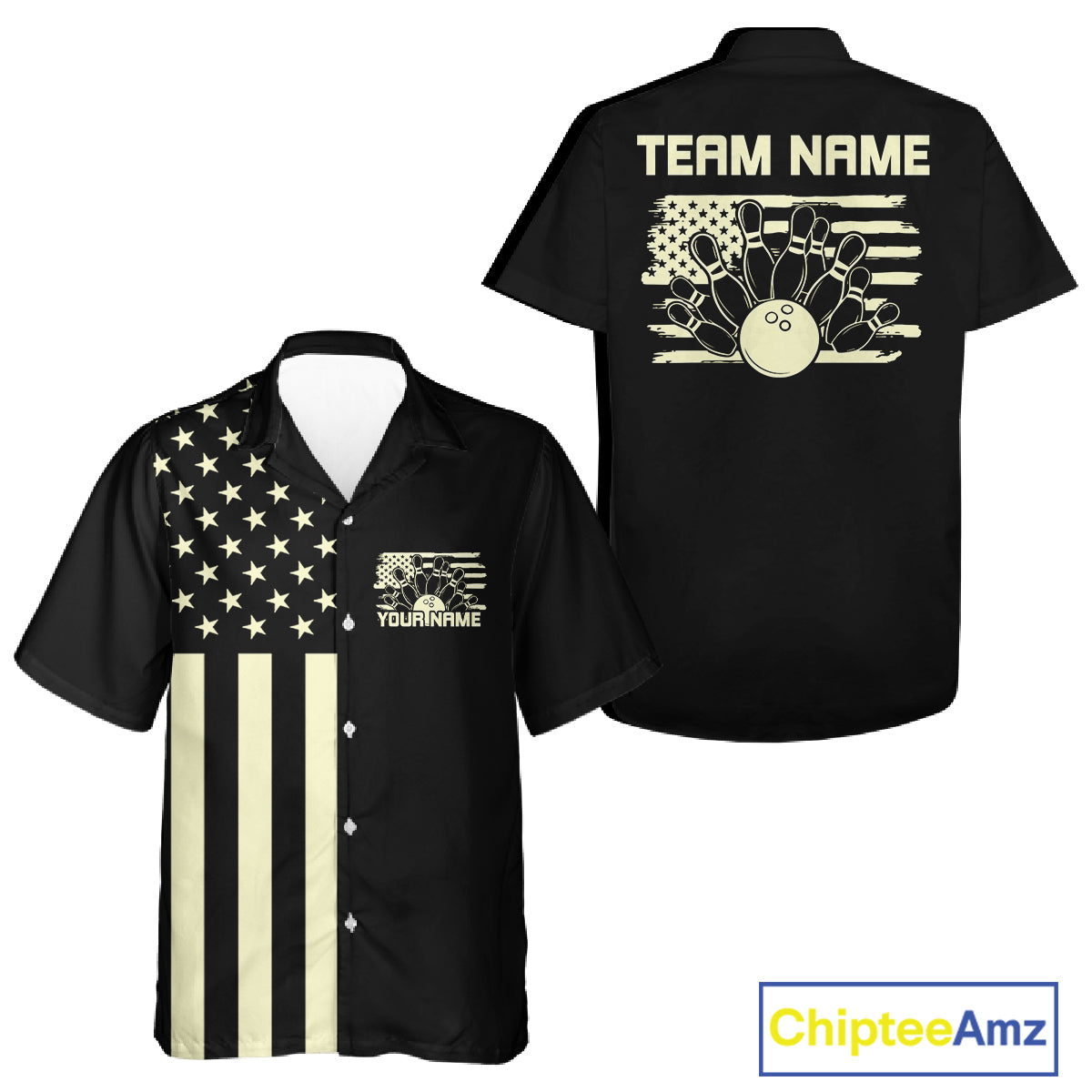 Custom Vintage US Flag Patriotic Bowling Button Up Team Shirt For Men And Women IPHW10086