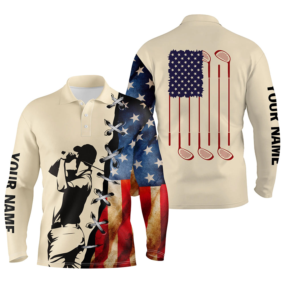Vintage American flag Mens golf polo shirts custom name golf clubs patriotic team mens golf shirt NQS5720
