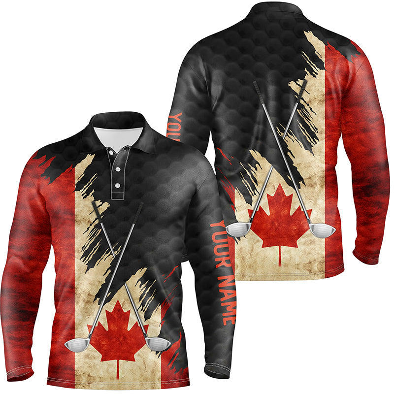 Vintage Canadian flag golf clubs patriotic custom black Mens golf polo shirts, team mens golf tops NQS7876