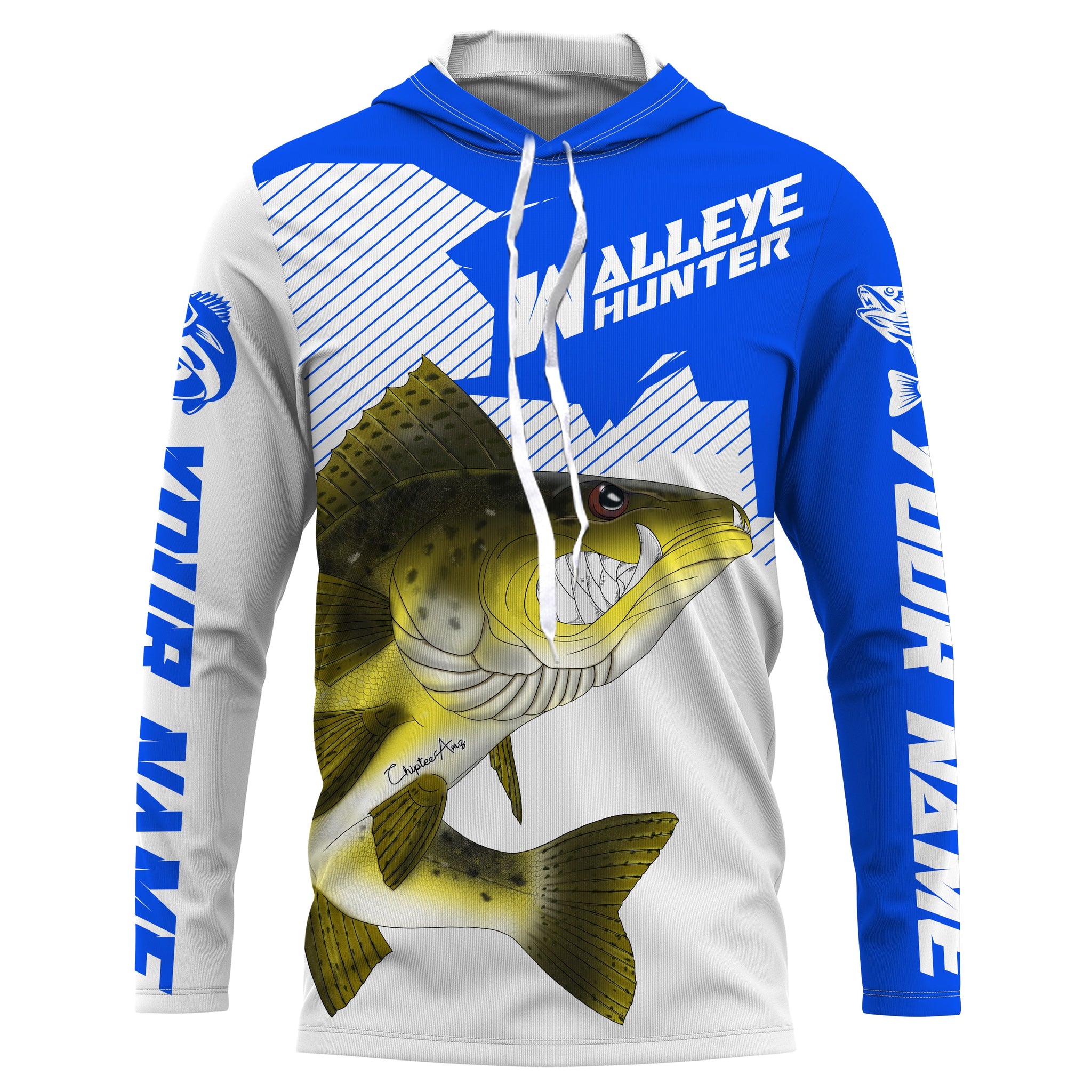 Angry Walleye Custom Long sleeve performance Fishing Shirts, Walleye hunter Fishing jerseys | blue IPHW3361