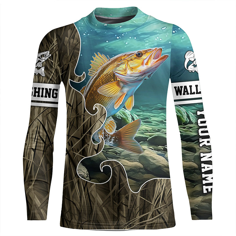 Lake Camo Walleye Fishing Custom Long Sleeve Fishing Shirts, Walleye Tournament Fishing Jerseys IPHW5742