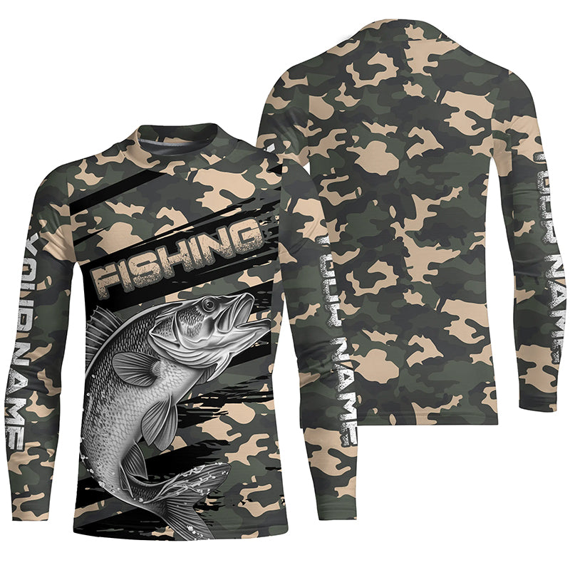Walleye Fishing Camo Custom Long Sleeve Shirts, Patriotic Walleye Fishing Jerseys IPHW6044