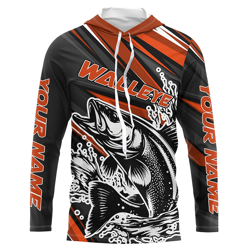 Custom Walleye Fishing Jerseys, Walleye Long Sleeve Performance Fishing Shirts | Orange IPHW6295