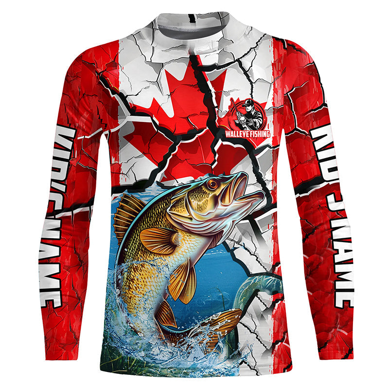 Personalized Canada Flag Walleye Fishing Shirts, Walleye Fishing Tournament Jerseys IPHW6828
