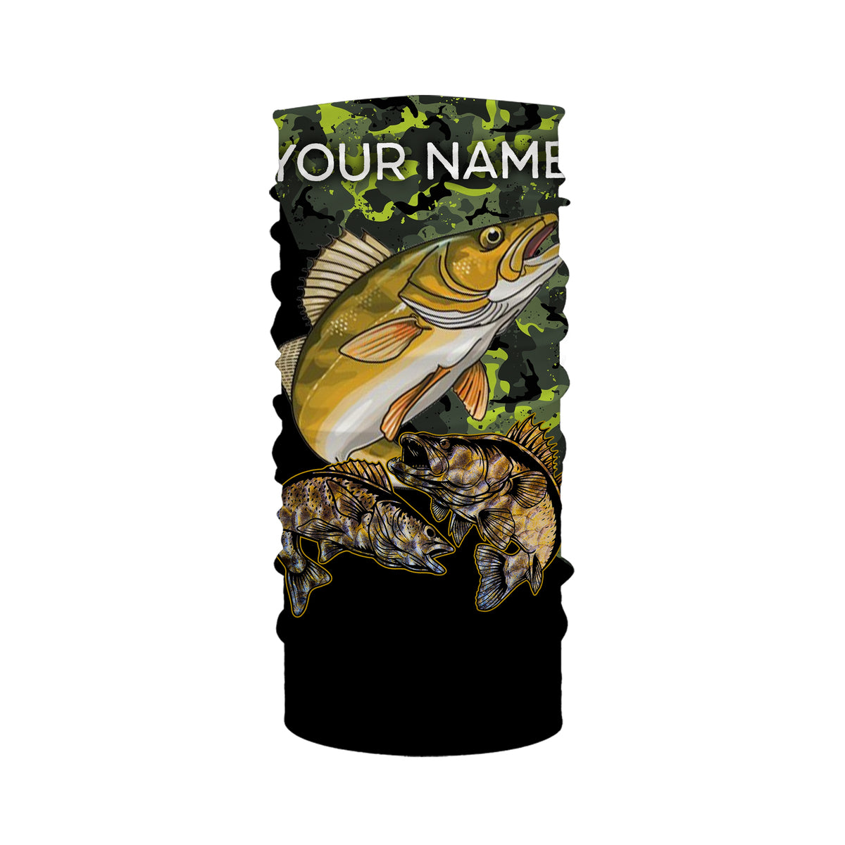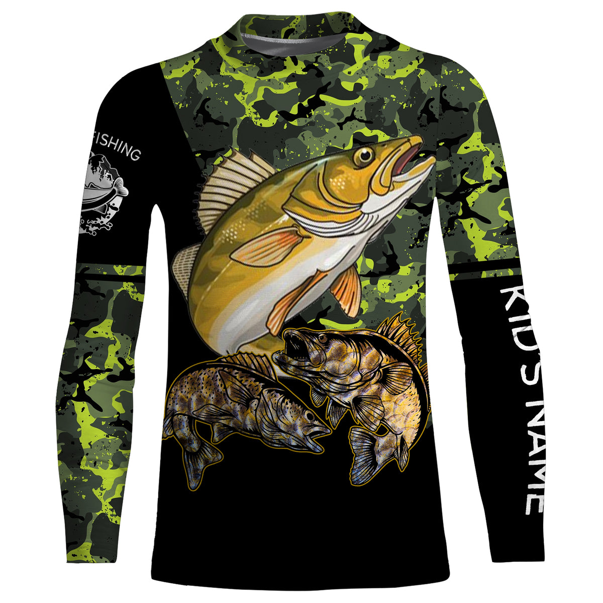 Walleye fishing black green camo personalized custom name sun protection long sleeve fishing shirts NQS3849