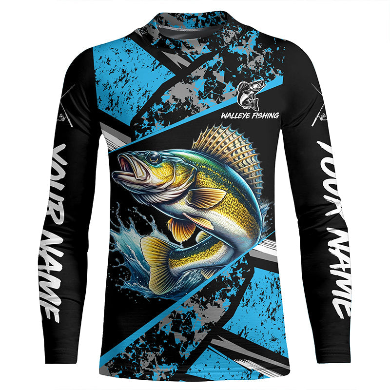 Walleye fishing Blue camo Long Sleeve Performance Fishing Shirts custom Walleye fishing jerseys NQS7990