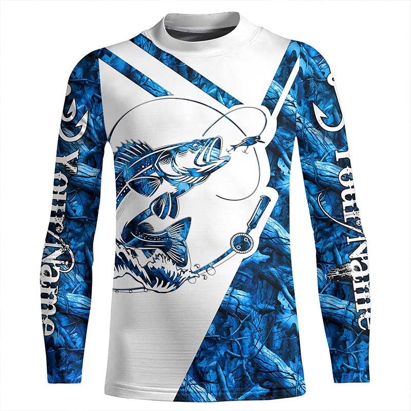 Walleye Fishing blue camo UV protection Custom long sleeves fishing shirts, Walleye fishing jerseys NQS7942