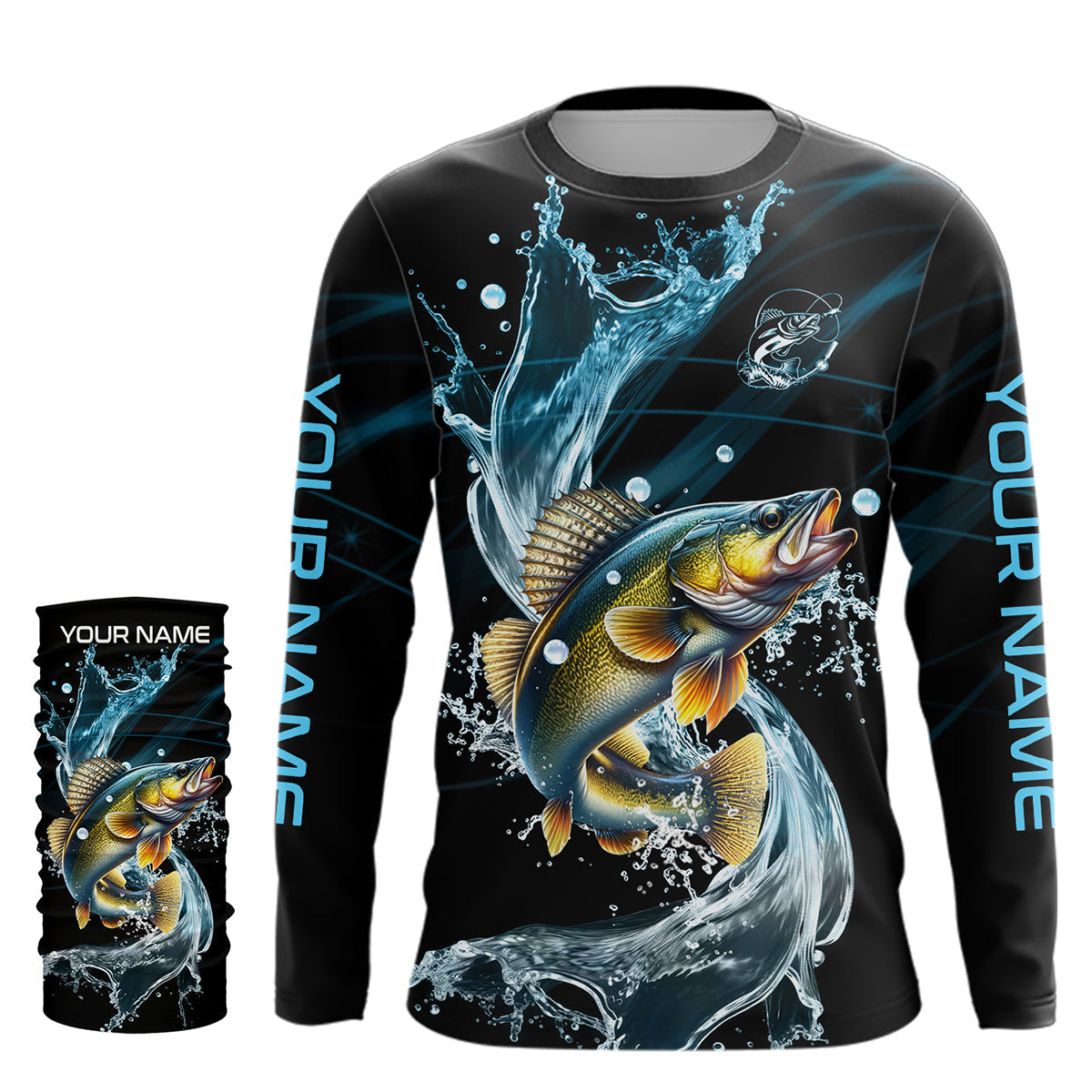 Walleye fishing blue water Custom performance long sleeve fishing shirts, Walleye fishing jerseys NQS9093