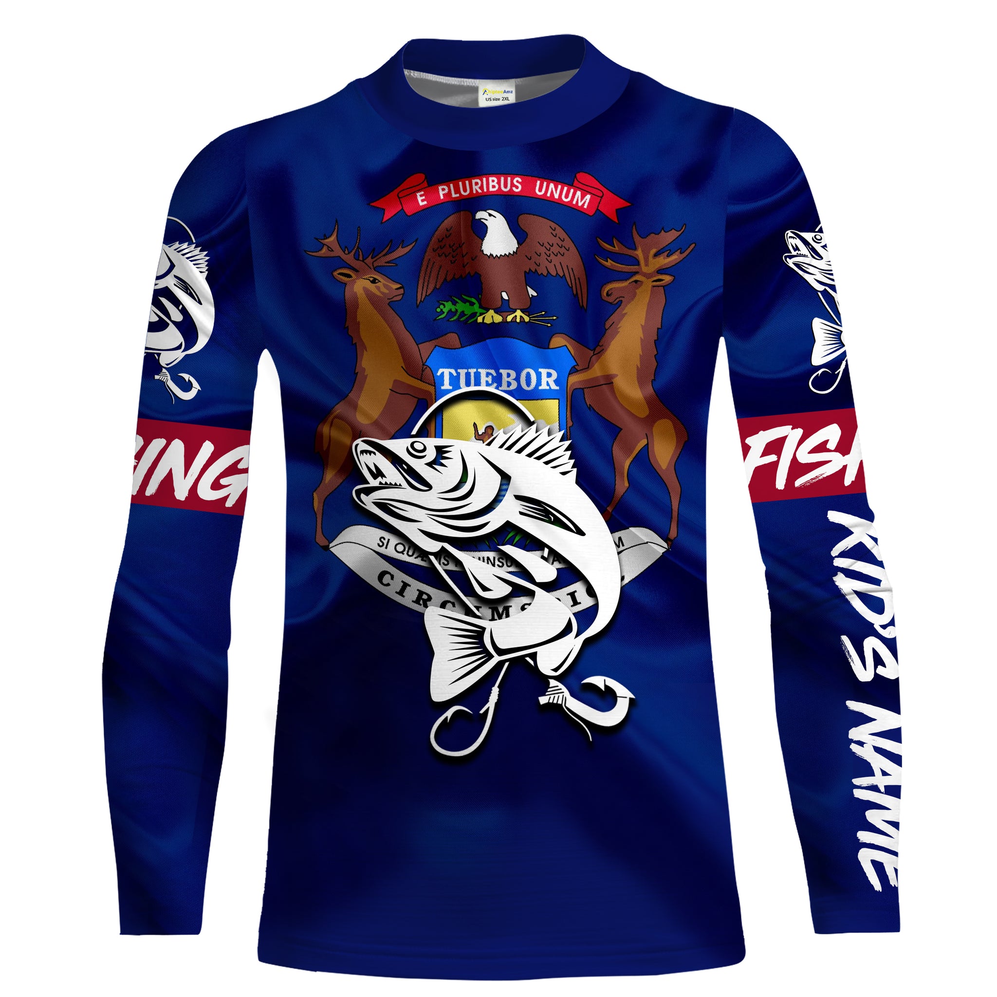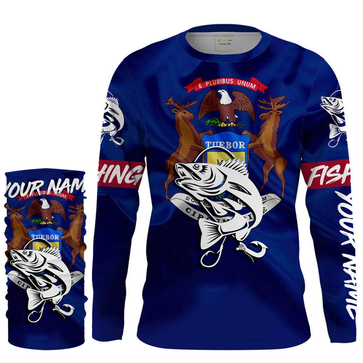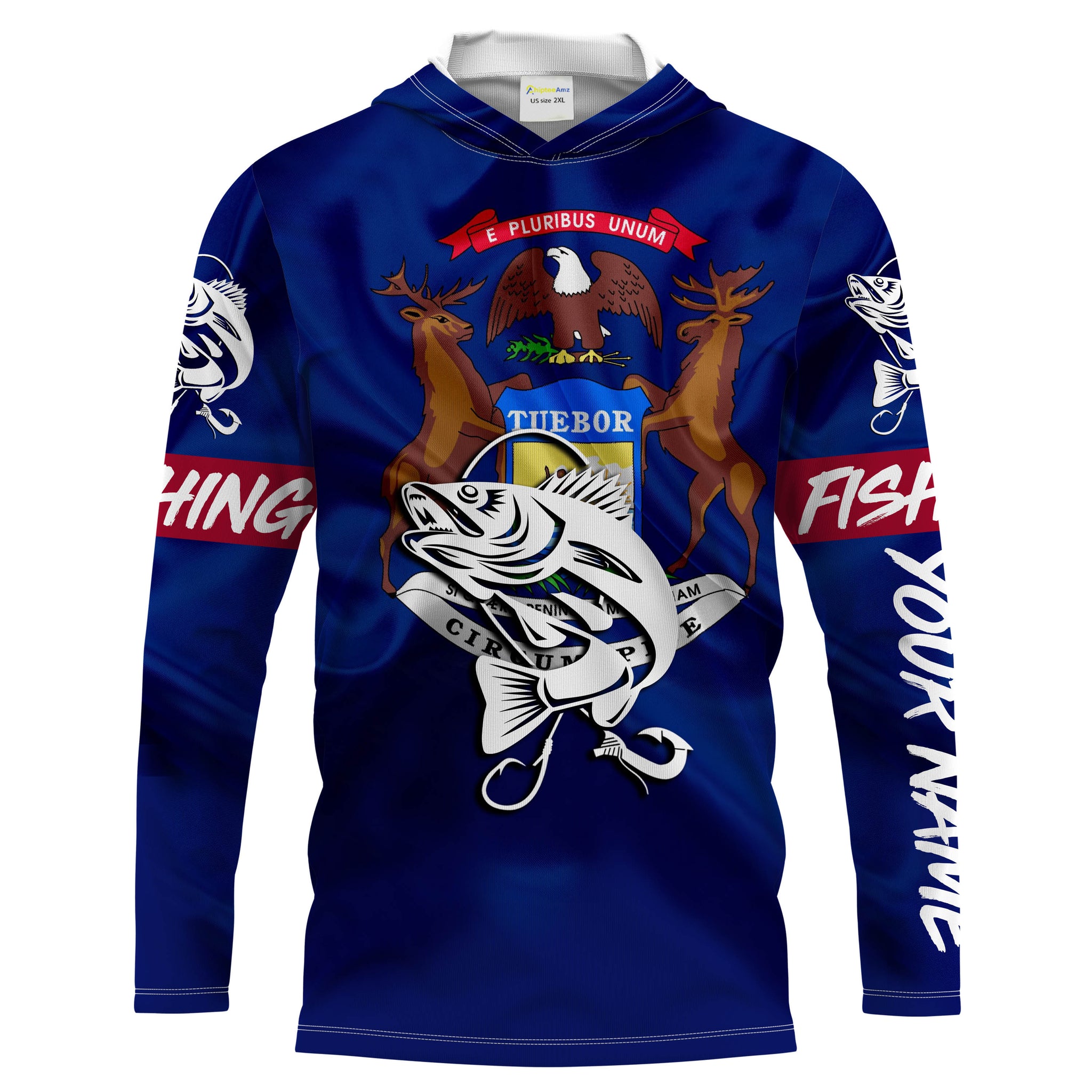 Walleye fishing Michigan Flag UV protection Custom personalized Patriotic fishing apparel gift NQS1478