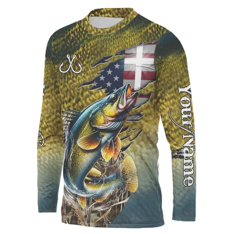 Walleye Fishing Scales Camo American Flag Faith patriotic Custom UV protection long sleeves shirts NQS9310
